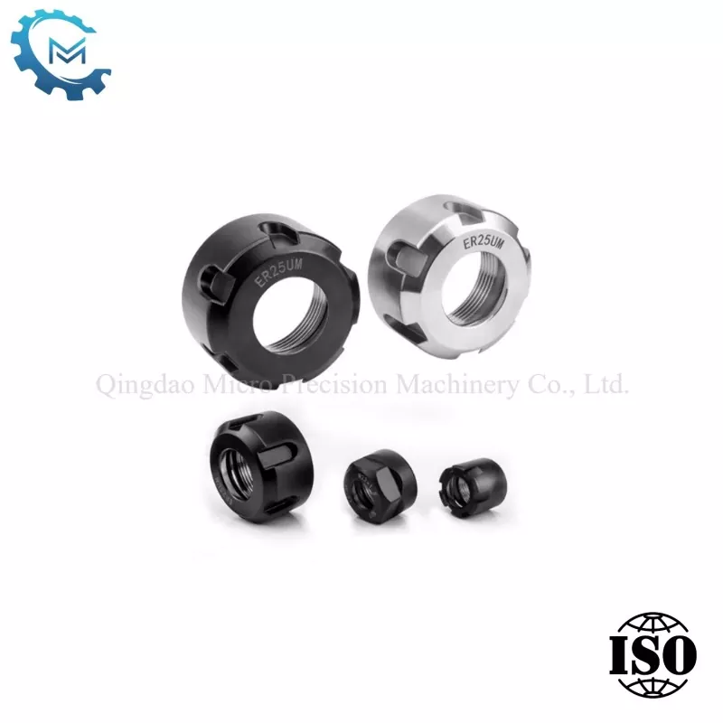 முதலாவதாக, நட்டின் வெளிப்புற வடிவம் திருப்புதல் மற்றும் அரைக்கும் செயல்முறைகள் மூலம் இயந்திரமயமாக்கப்படுகிறது. ஈ.ஆர் கோலட் மற்றும் கருவி வைத்திருப்பவர் அமைப்புடன் சரியான ஒத்துழைப்புக்கான நூல்களின் துல்லியம் மற்றும் பொருத்தத்தை உறுதிப்படுத்த நூல் துளைகள் இயந்திரமயமாக்கப்படுகின்றன. எந்திரத்திற்குப் பிறகு, நட்டு அதன் கடினத்தன்மையை அதிகரிக்கவும், எதிர்ப்பை அணியவும், தணித்தல் மற்றும் மனம் போன்ற வெப்ப சிகிச்சைக்கு உட்படுகிறது. ஒரு மென்மையான மேற்பரப்பு மற்றும் பரிமாண துல்லியத்தை உறுதிப்படுத்த, தேவையான தொழில்நுட்ப விவரக்குறிப்புகளை பூர்த்தி செய்வதற்கு நட்டு தரையில் உள்ளது.